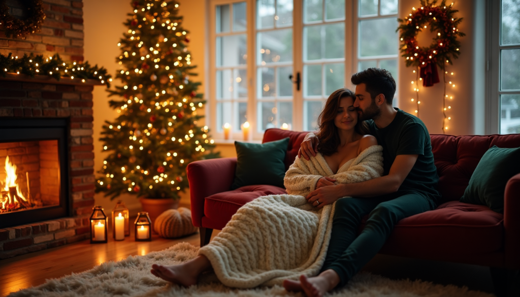 - Snuggling under one blanket during festive movies